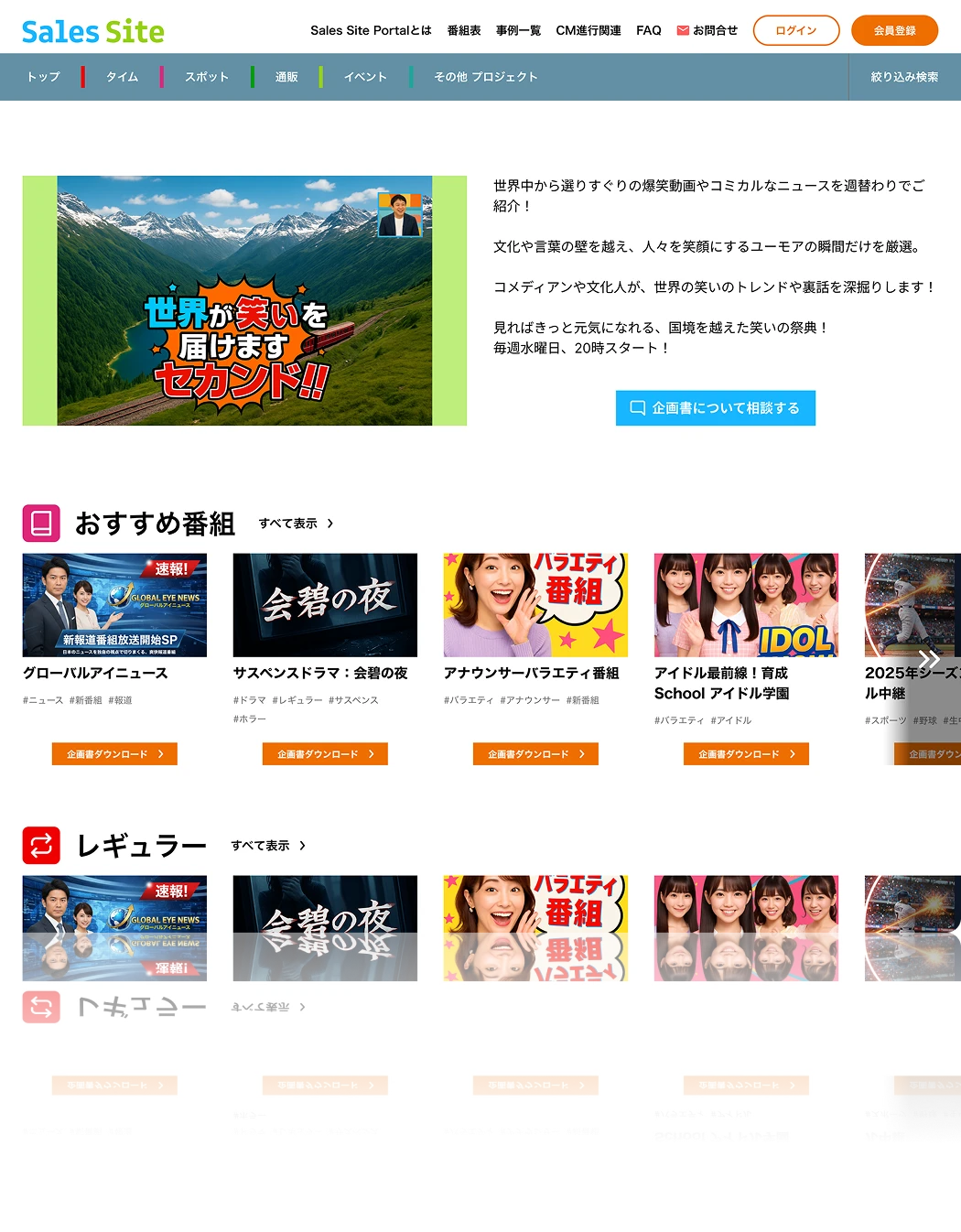 レギュラー番組や単発・特番企画、通販などの営業資料やセールスシートを登録・管理できます。